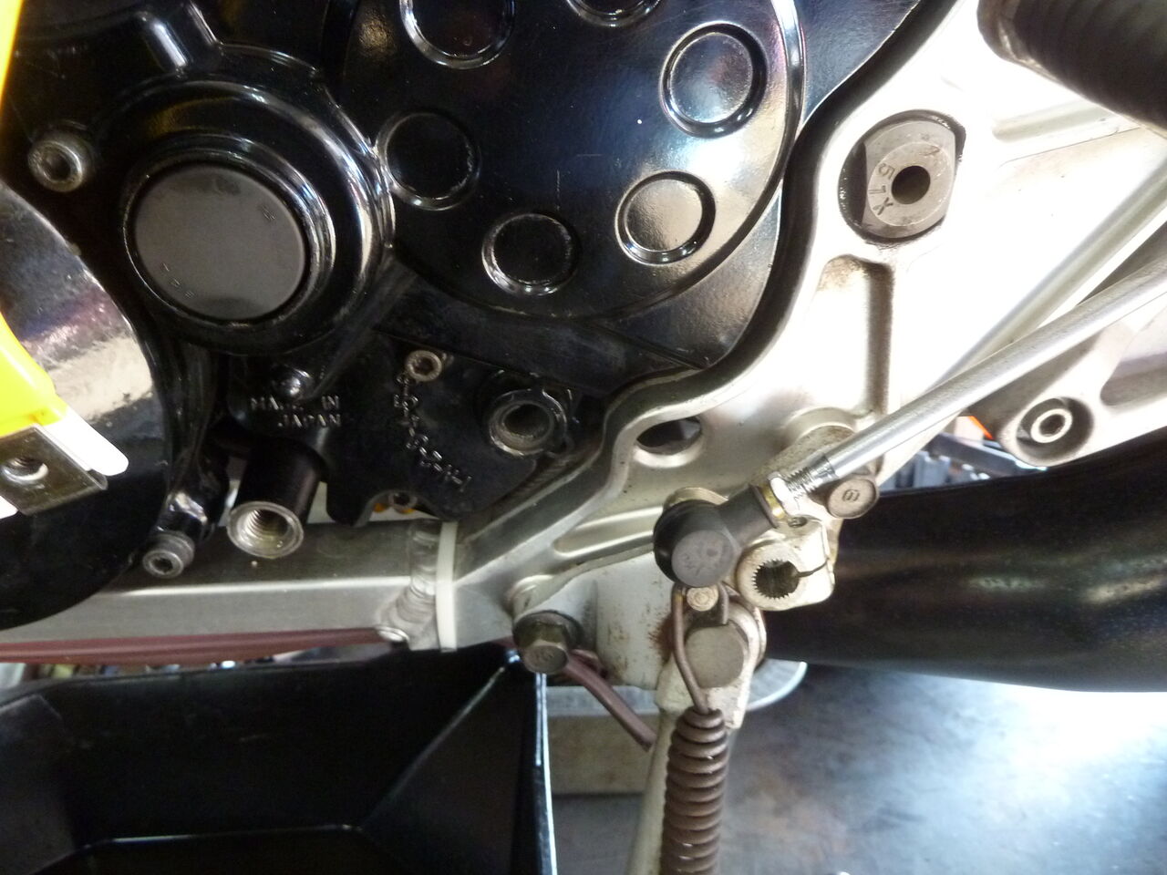 ギヤーオイル、クーラントを抜きシフトペダルを外します