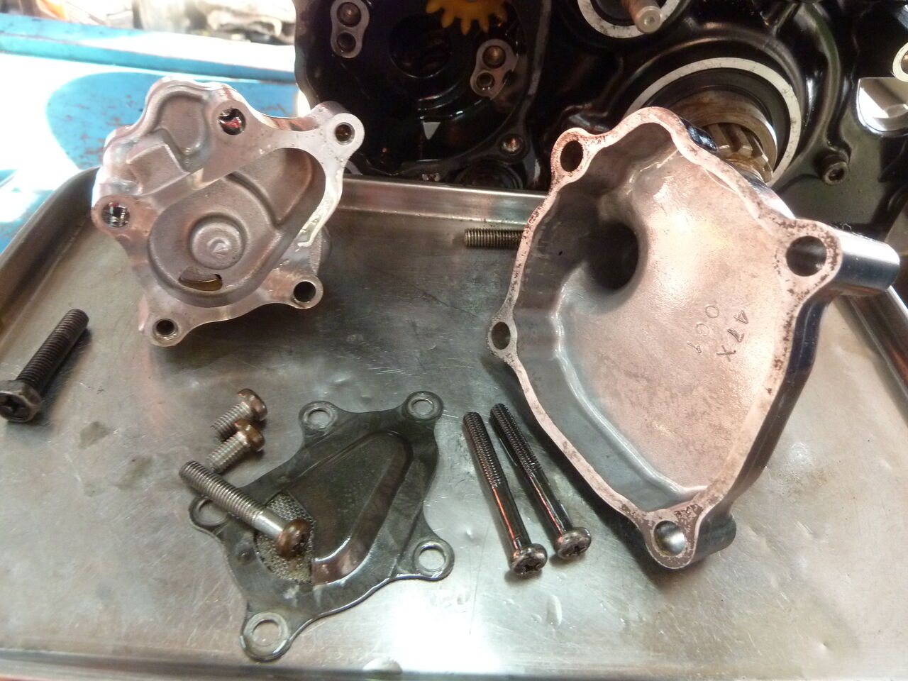 ウオーターポンプ、右クランクケースカバーを外してクラッチ廻り分解