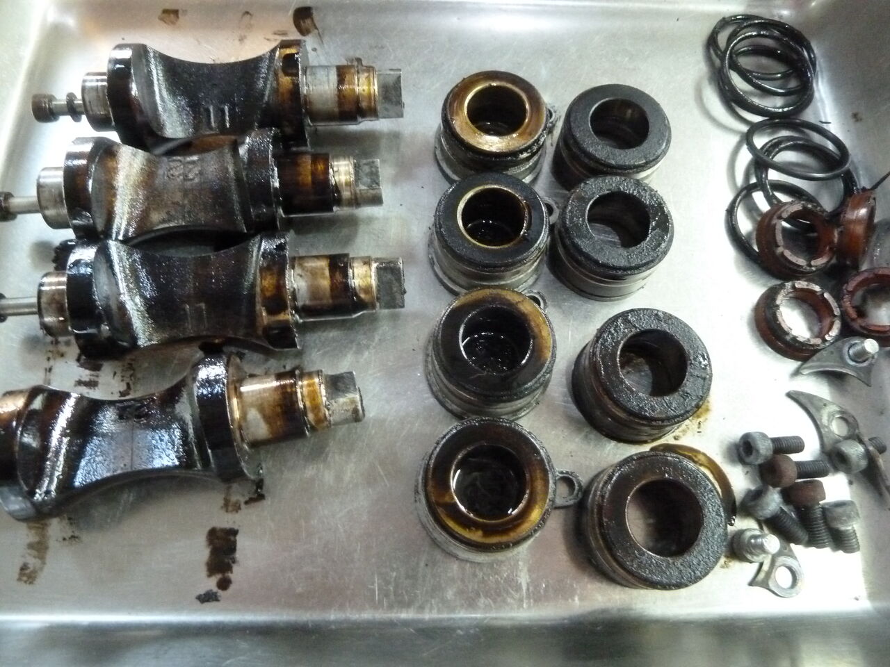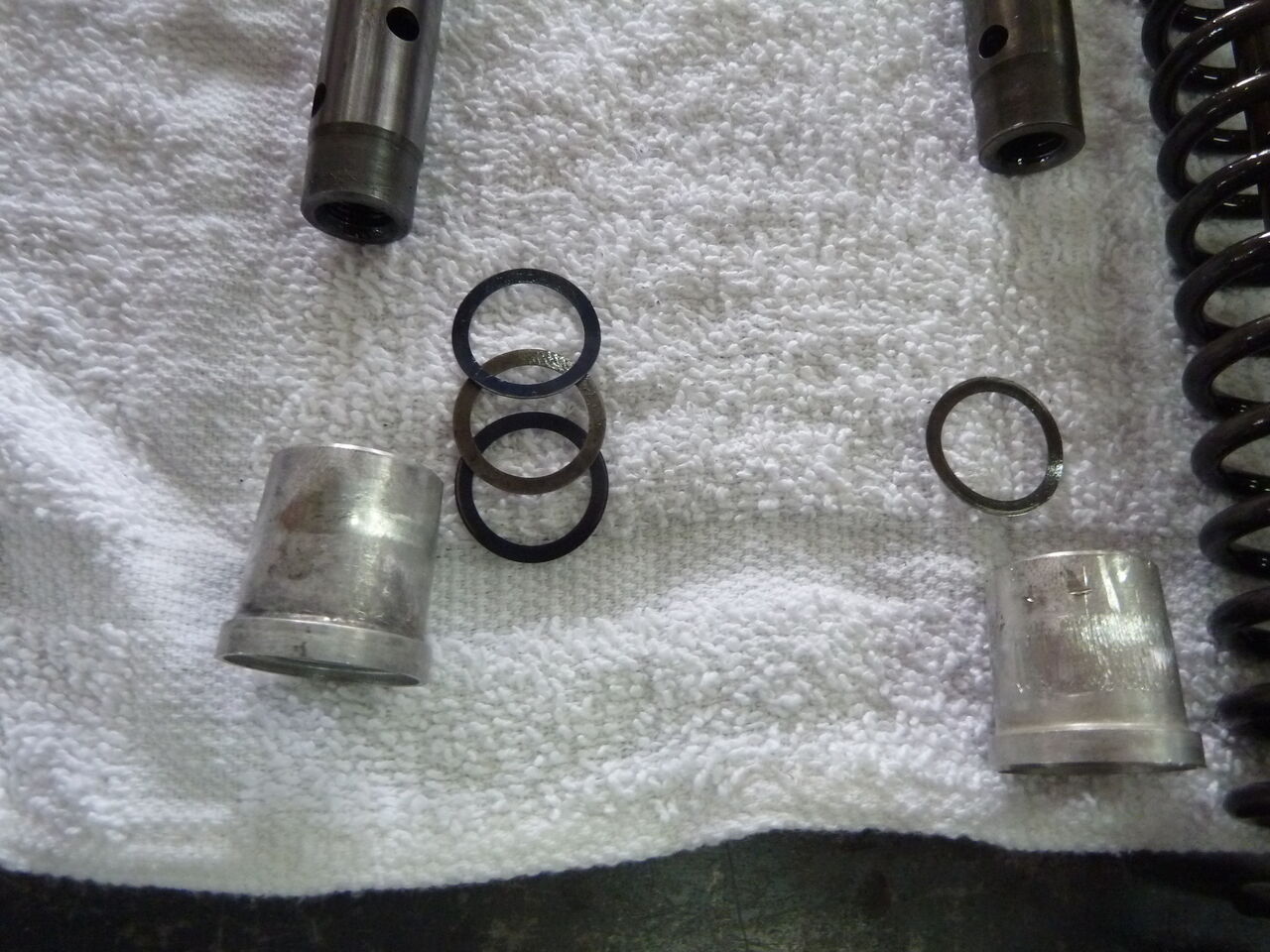 ピストン下部のシムが入っていません?一度分解した後があり、入れ忘れたようです