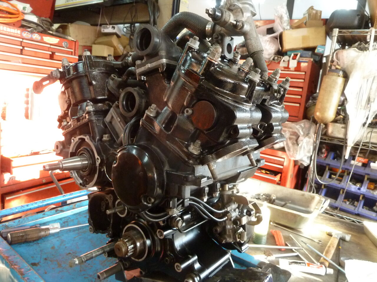 エンジンが組みあがりました車体整備を済ませてエンジンを載せます