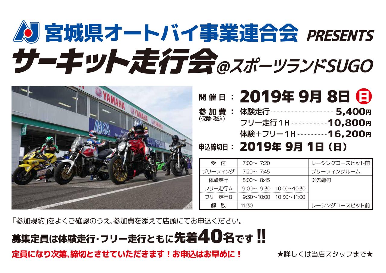 AJ宮城加盟店からのお申し込みが可能になってますのでサーキット走行に今日にございます方は是非1度ご参加下さい。