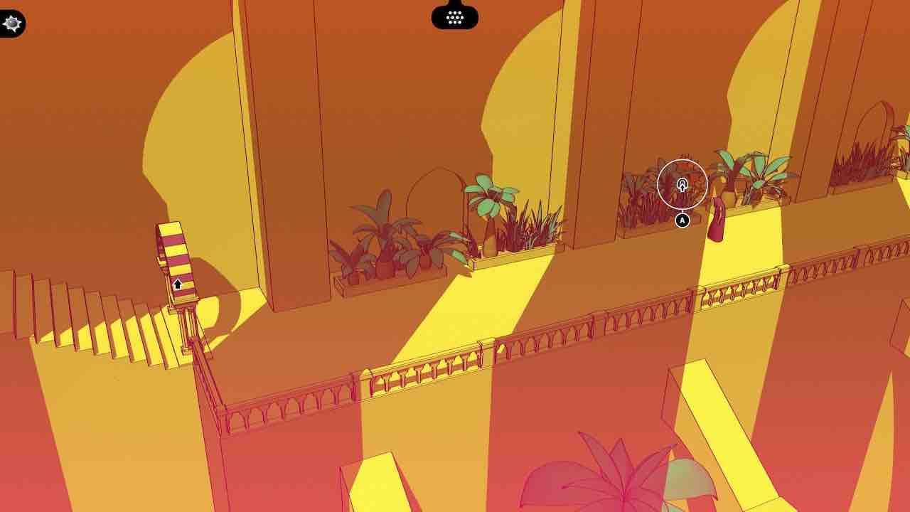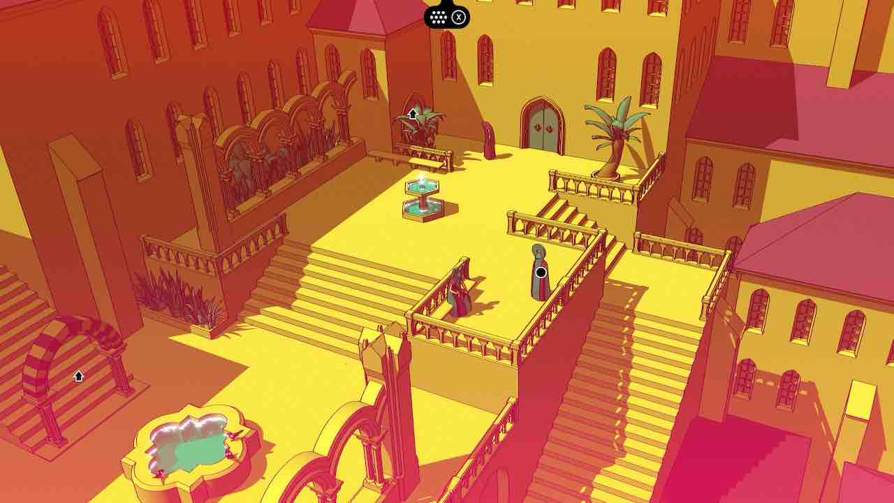 列を組んで歩く信徒に紛れ込み、回廊に入ったらキャンセルボタンでフリームーブ状態に戻って仕掛けを調べます。ステルスモードになりますが見つかることはないのであせらなくてもOK。