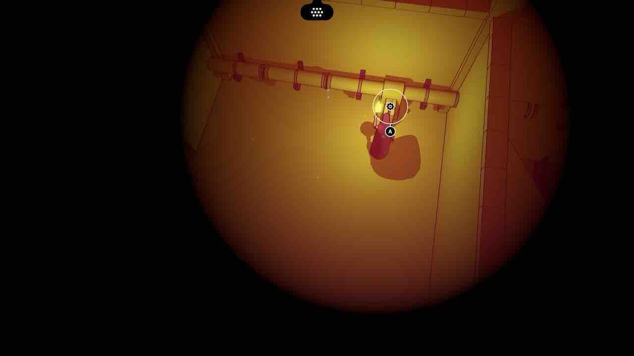 開かない扉があるようです。光と効果音を放つ場所があるので、そこを調べましょう。ちなみにヒントボタン(SwitchならRボタン)を長押しすると、まだ調べていない場所や謎解きが終わっていない場所は黒白丸で表示されます。インベントリ(発見物)の見方もここでわかります。
