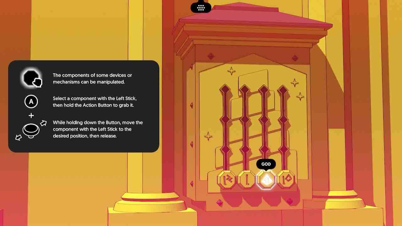 【墓地】先ほど見つけた4つの文に合わせて4つの像を動かします。
