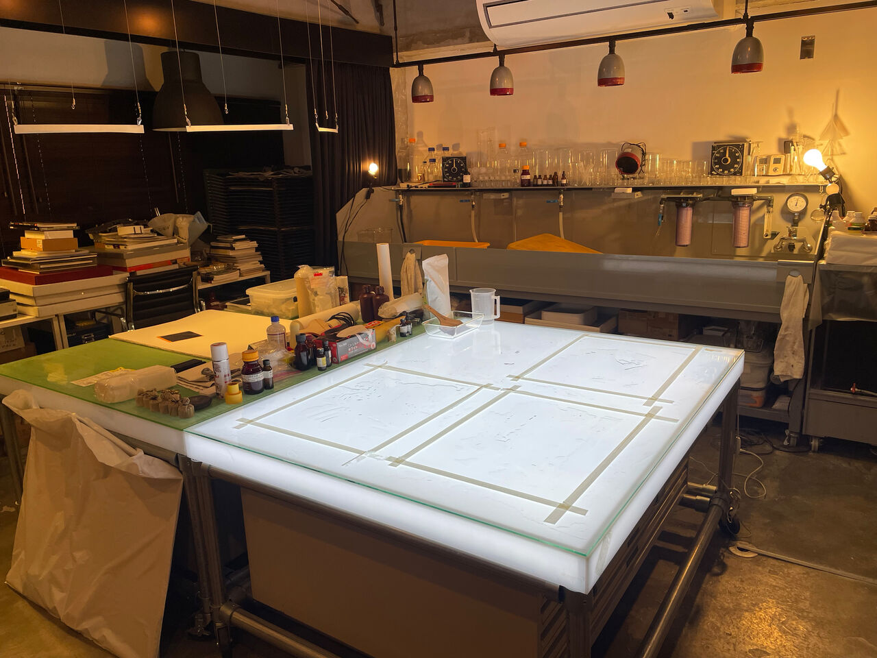このライトテーブルは20x24インチが、らくらく4枚置けるのでとても便利