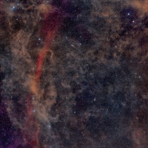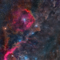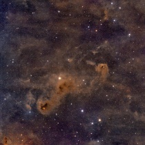 おうし座のα星アルデバラン・ヒアデス星団の周辺には沢山の分子雲が広がっています。写真左下の明るい星がアルデバラン、周辺を星雲が取り囲んでいます。写真下側真ん中にかけて明るい星がたくさん写っていますが、そこがヒアデス星団です。写真真ん中のいも虫のような星雲 ...