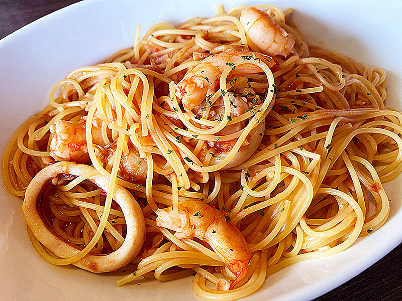 「魚介と完熟トマトのペスカトーレ」