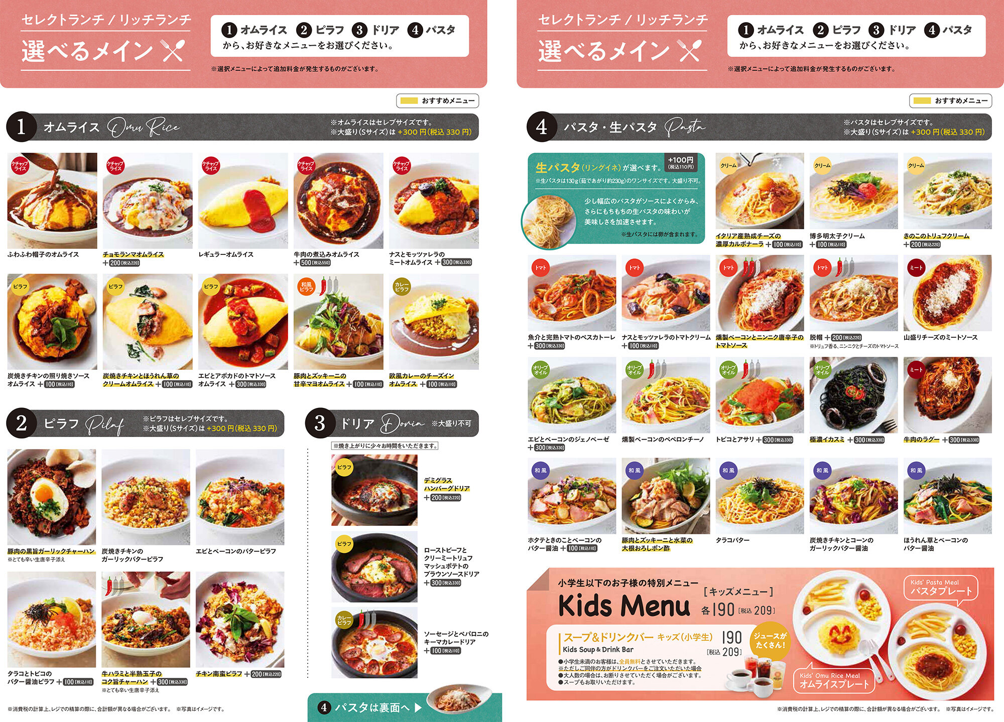 オムライス、ピラフ、ドリア、