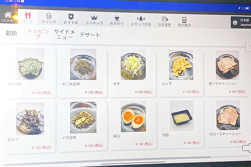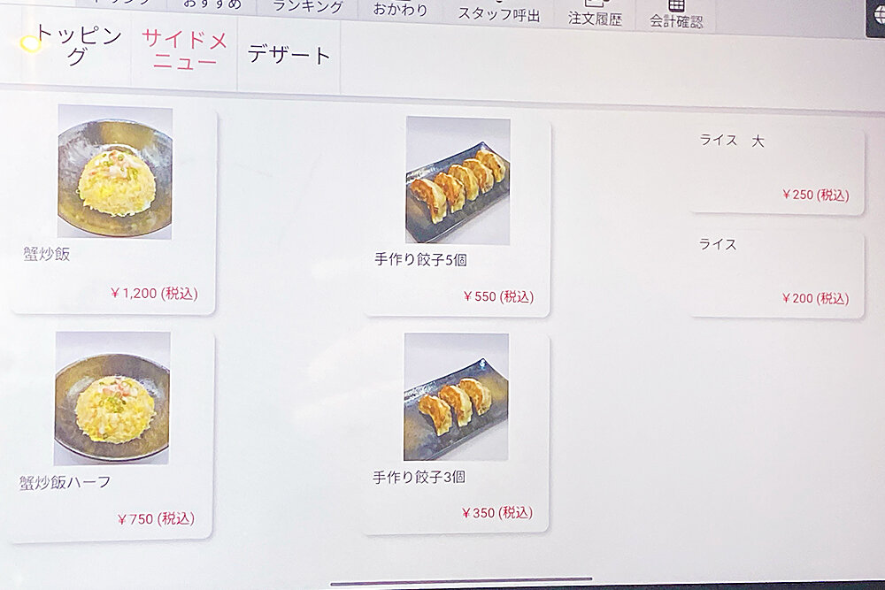 タブレットでの注文方式。
