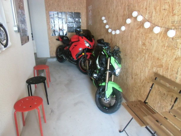 中に入ってみるとまず通路に2台のバイクがお出迎え。