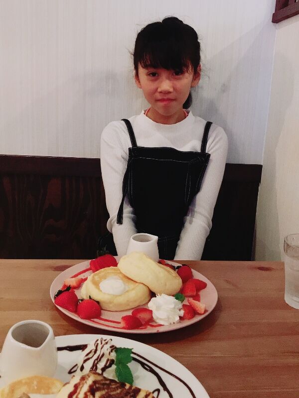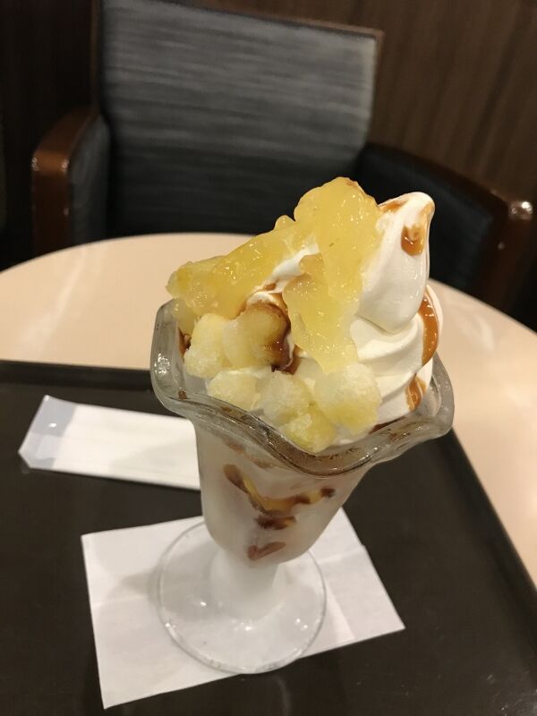 ボウリングの後のスイーツ。レナが選んだのは、シナモンアップルパフェ。