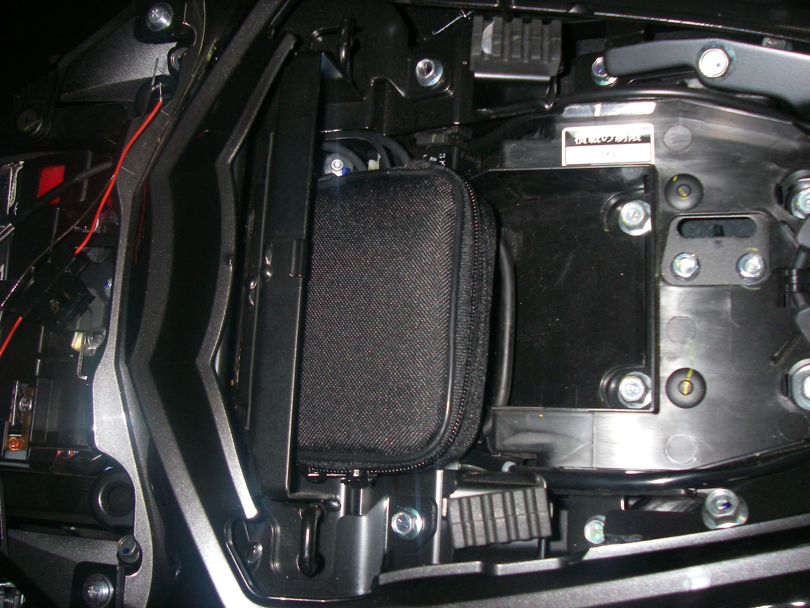 バイク用ETCの本体は、必ず鍵がかかる場所に格納しなければいけない決まりになってます。
