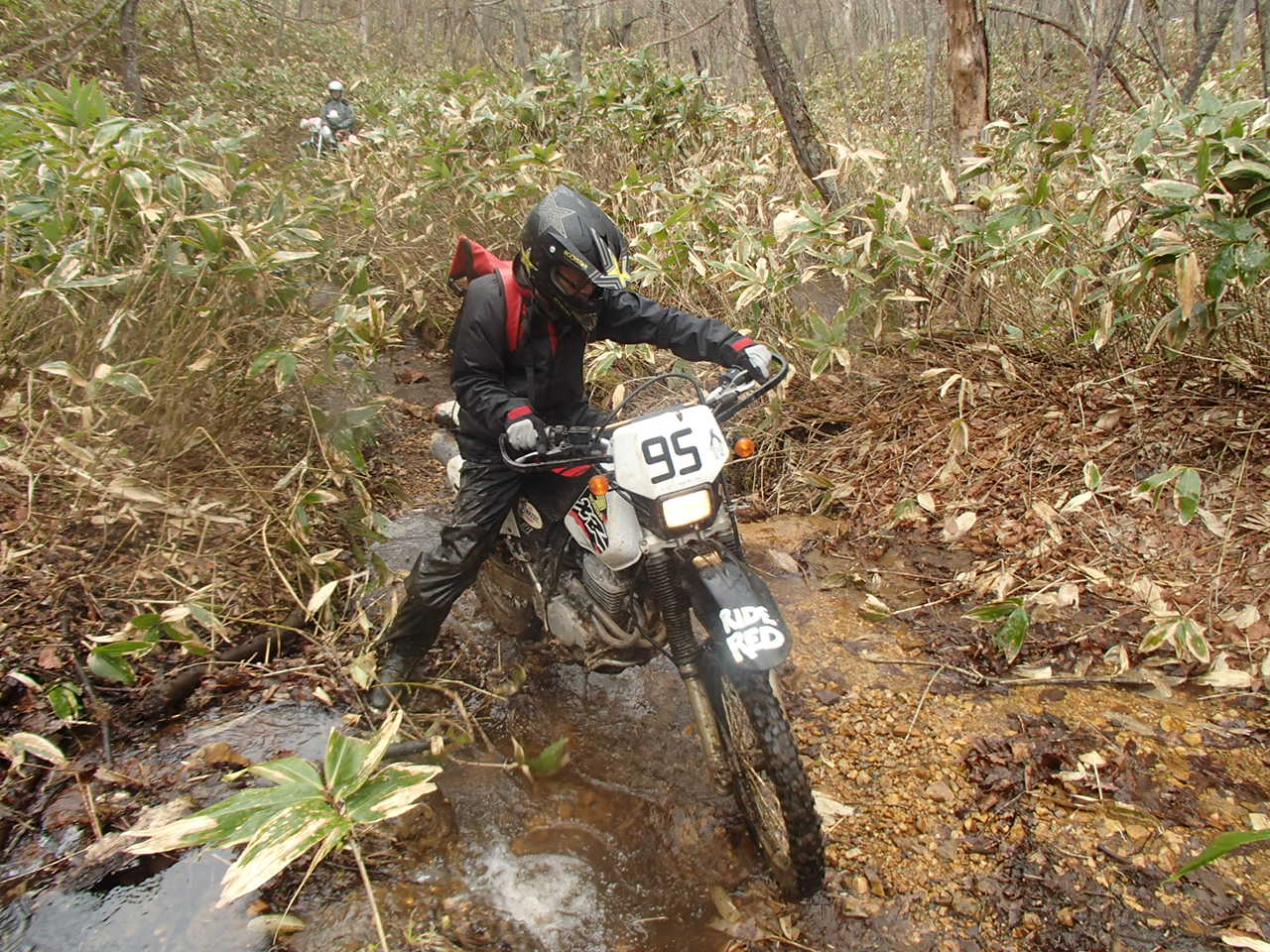 8人とバイクで行く途中に道路工事の土が大量に散乱
