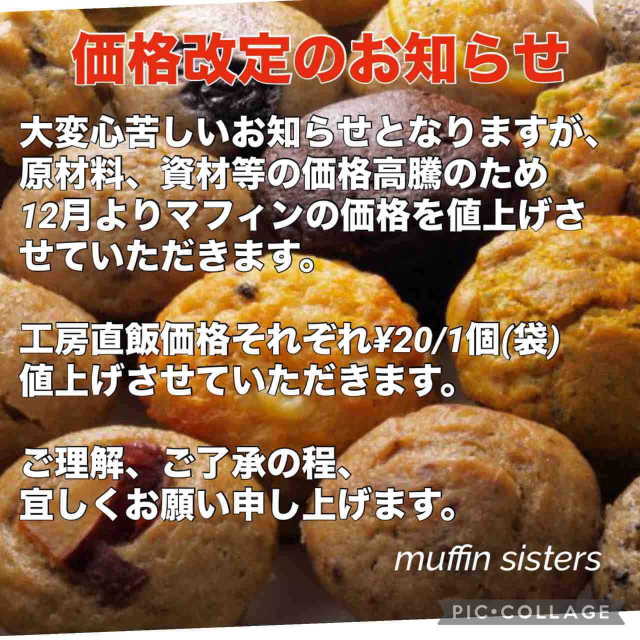 2024年11月23日 vol.383🍌価格改定お知らせ 半年以上ぶりのブログ更新です🙏😅数年前から続く原材料、資材等の値上がりでマフィンの価格も再度値上げの形で改定となります。来月12月より工房直販価格が¥20/1個(袋)値上げさせていただきます。ご理解の程よろしくお願いいたします😌