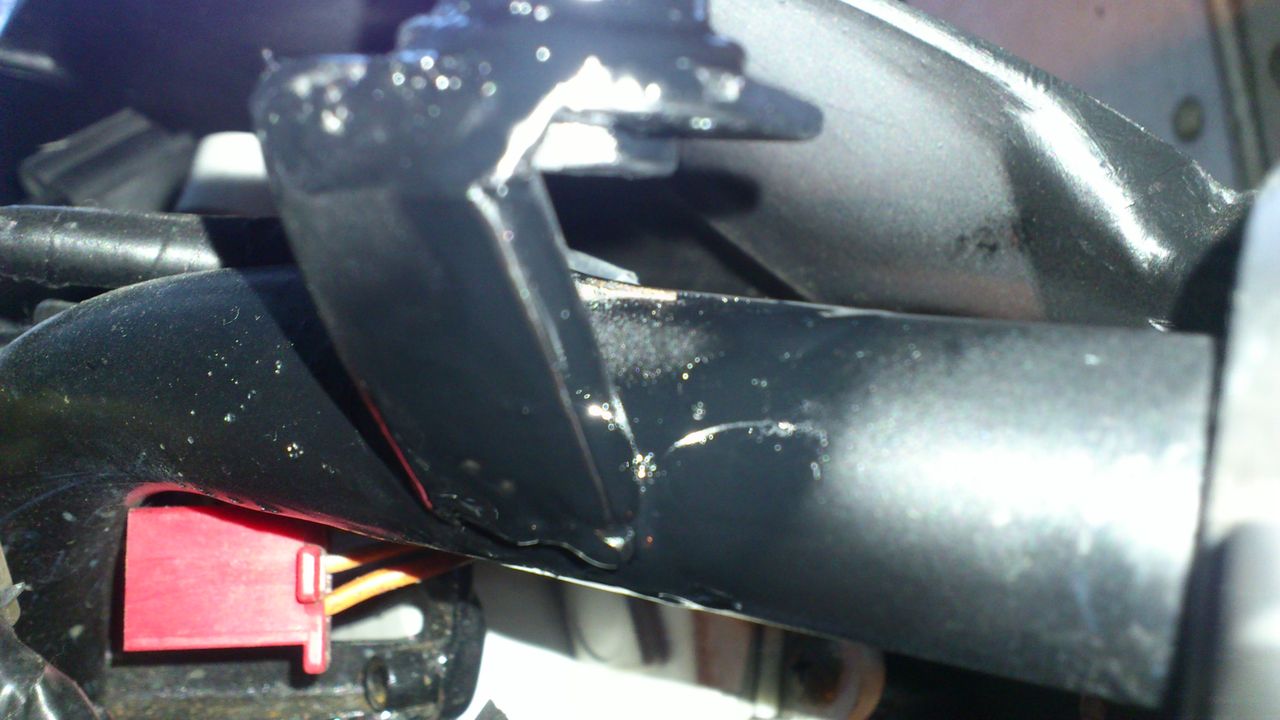 若干右ミラーに比べ振動が多いのと、よくこっちに買い物袋ぶら下げるので補強を入れる事に。