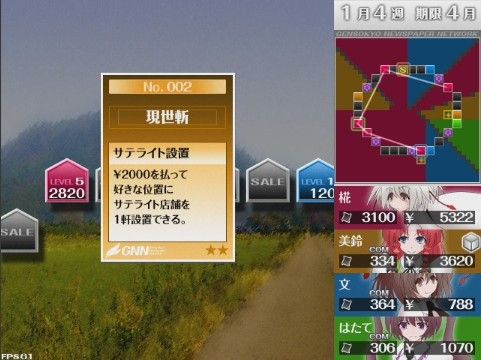 現世斬のスペルカードでは、『周回マス以外』の任意の位置にサテラライトという自分管轄の店舗を設けられます。