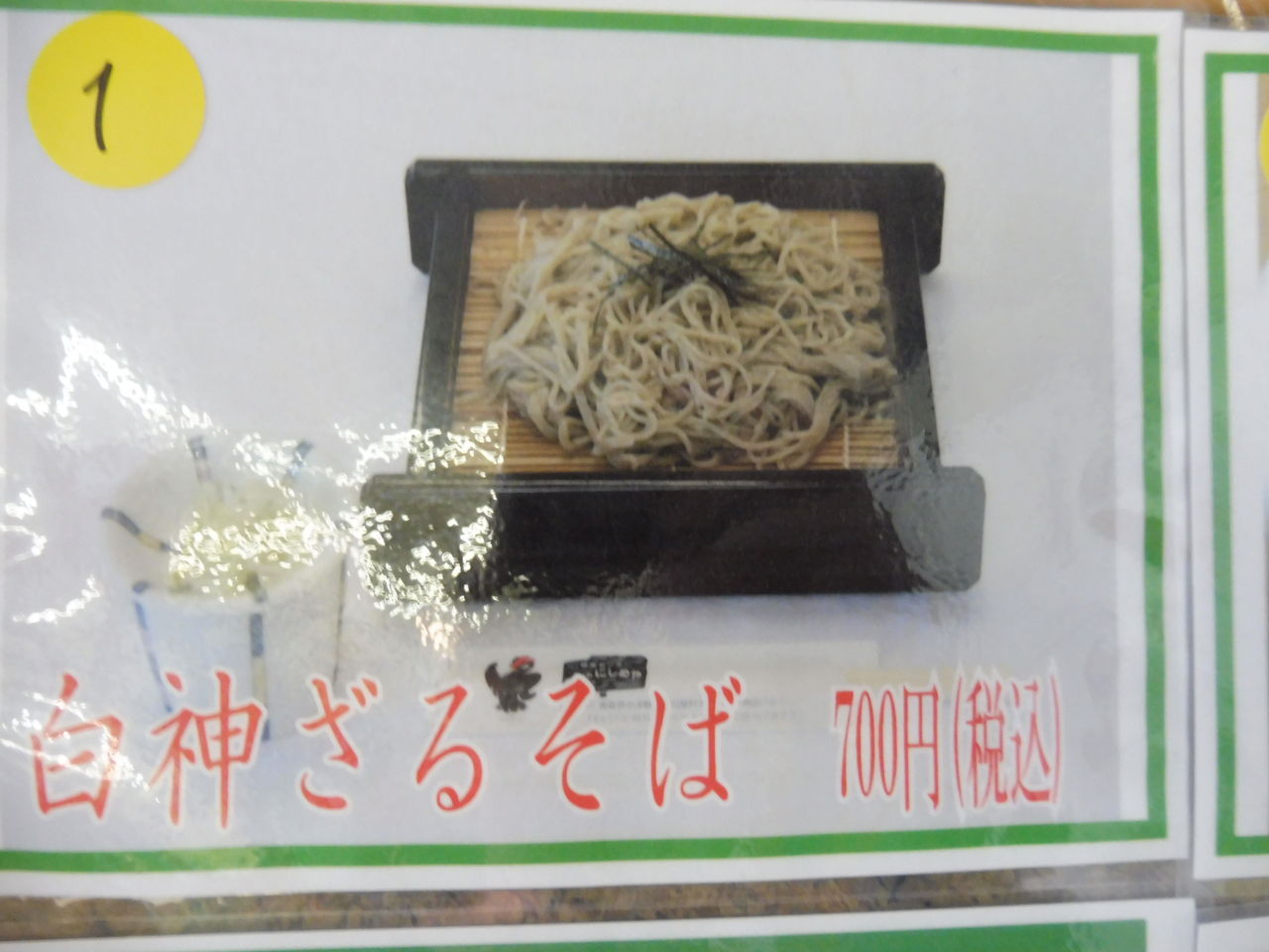 食堂メニューの一部、白神ざるそば