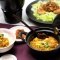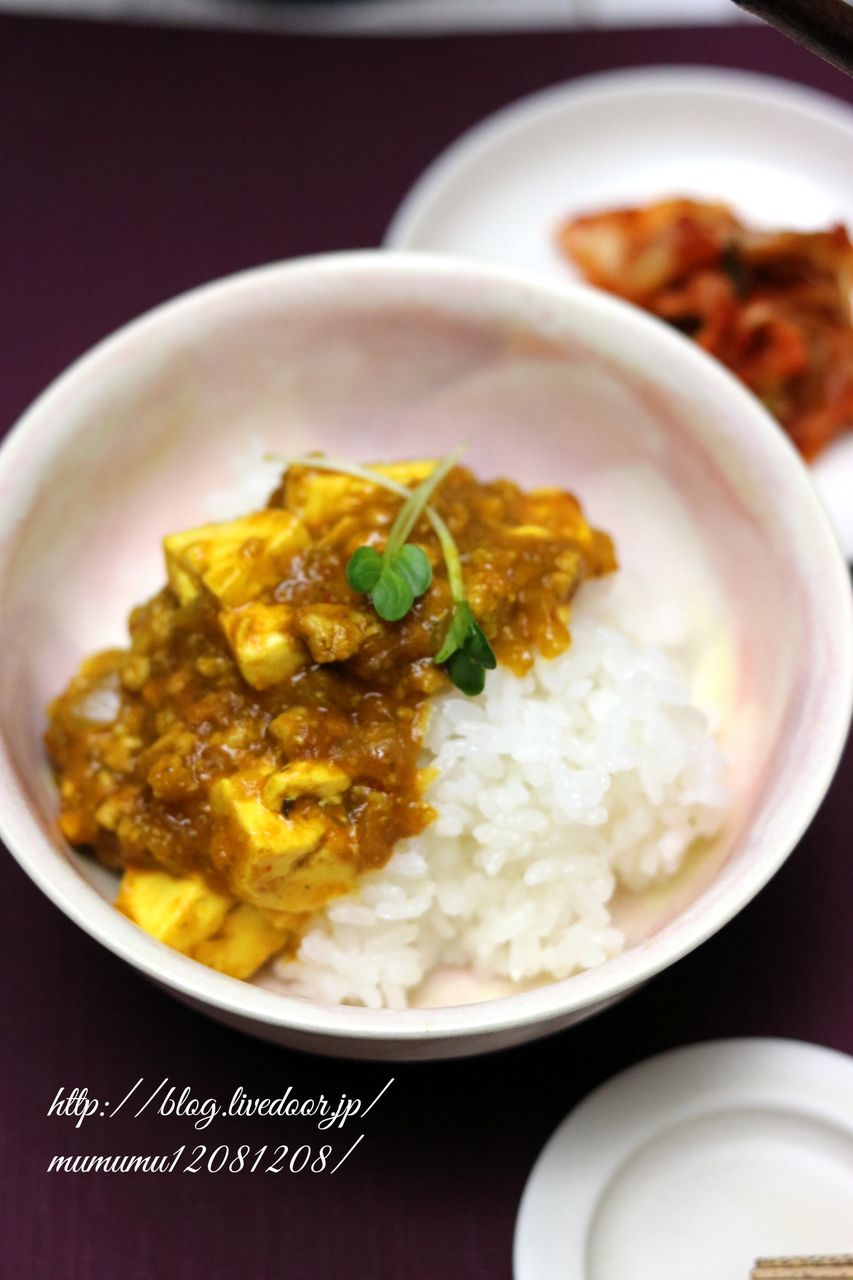 カレー麻婆・鶏むね肉の酸っぱ焼き・キムチ・白ご飯。