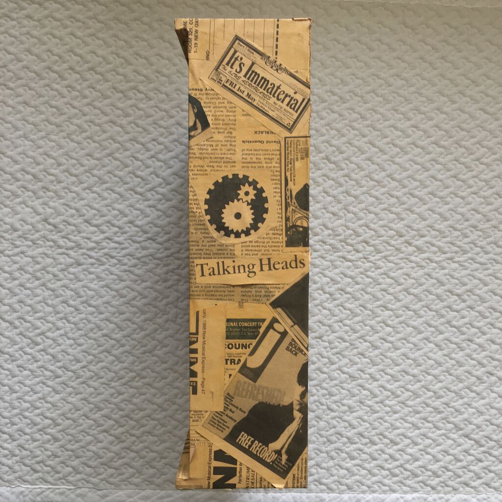 このオブジェには『and she was...』というTalking Headsの曲から拝借したタイトルよろしく、主に恋愛に関する様々な思い出がつまっているのだけれど、今では儚く霧散した想い以上に当時のNMEのコラージュの方が自分の過去を形成した尊い遺産のように感じられて、内部の小物は各々の場所に帰還したもののずっと箱だけが自室のいつも視界に入る場所に結果的に24年間も飾られている。