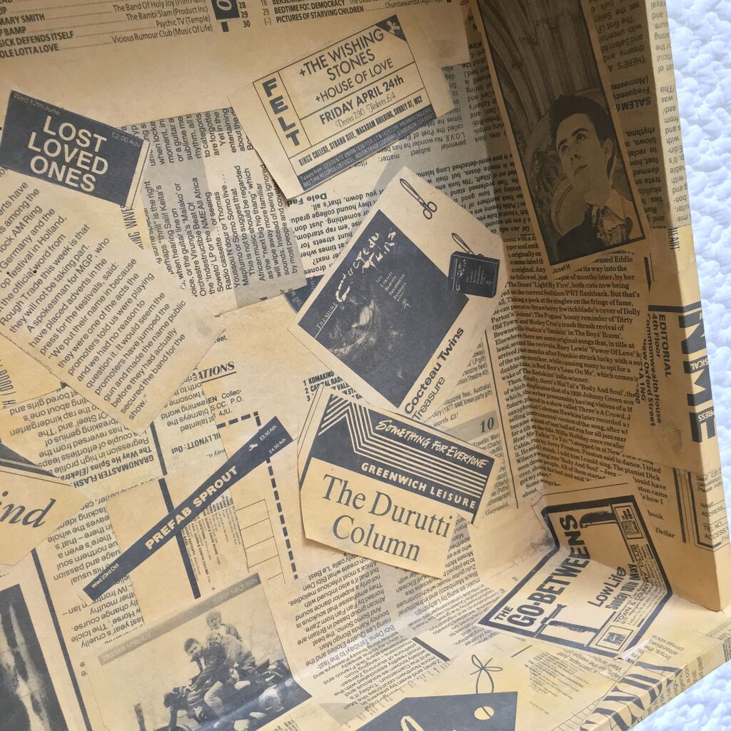 この連休の最中、部屋の模様替えにあたり、久々にこの遺産オブジェ箱を手にとったけれど、どうしてもコラージュされたNMEの記事や広告に目を奪われてしまう。