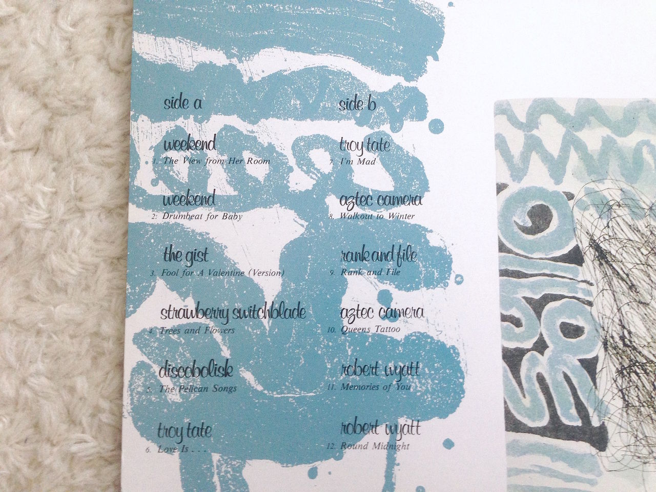 箱内部には、Cocteau Twinsの『Treasure』の広告やThe Durutti Columnの文字、そしてPrefab Sproutの名作『Steve McQueen』のジャケットが当時付き合っていた彼女と聴いた記憶と共にどっしりと鎮座している。