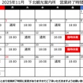 下記に11月の臨時休業日と営業時間について一覧を掲示しますのでご了承のほどよろしくお願いいたします。
