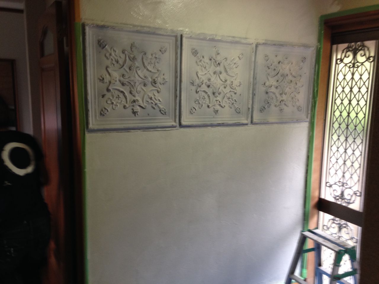 ↑ほんとは天井に使うエンボス板を玄関の壁に。なんだか、和洋折衷???