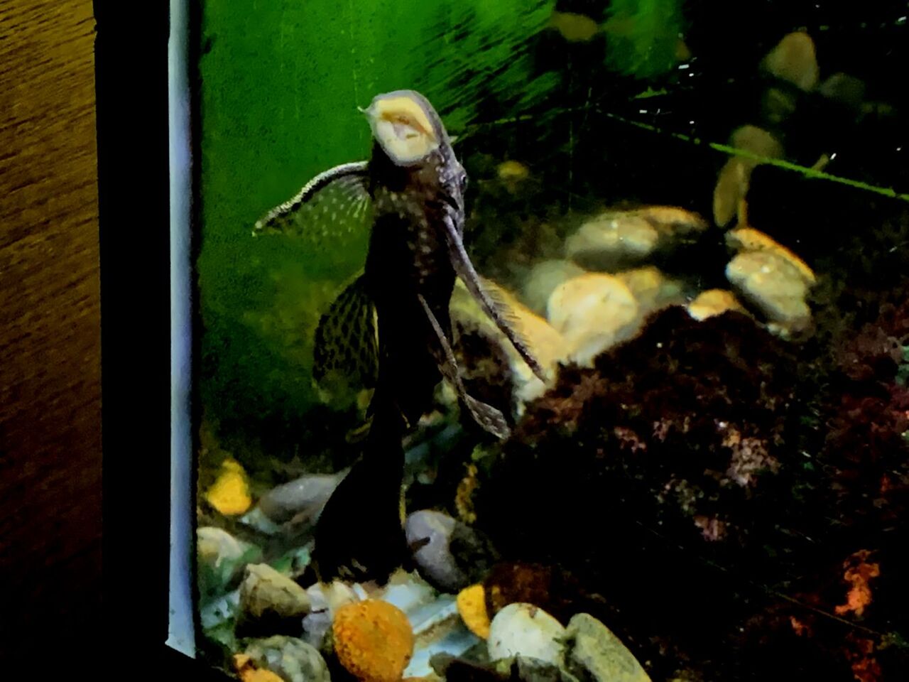 サイズが小さく効果がイマイチだったので、その直後にもう少し大きいブッシープレコのロングフィンを3匹追加した。