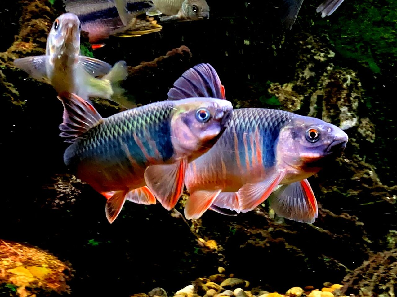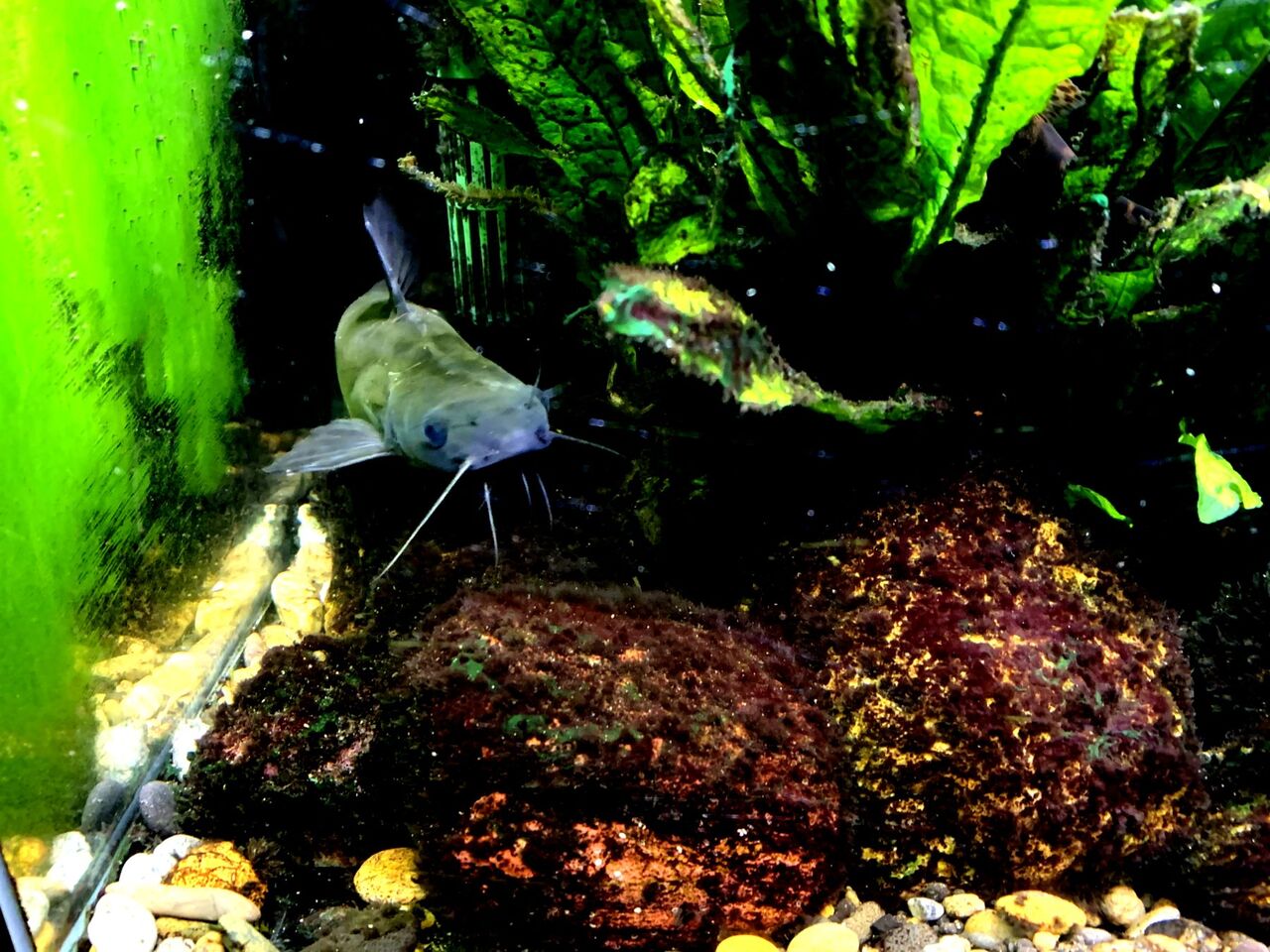 普段は水草と石の裏に潜んでいるのだが、餌を与えたら恐る恐る姿を現したギギ。
