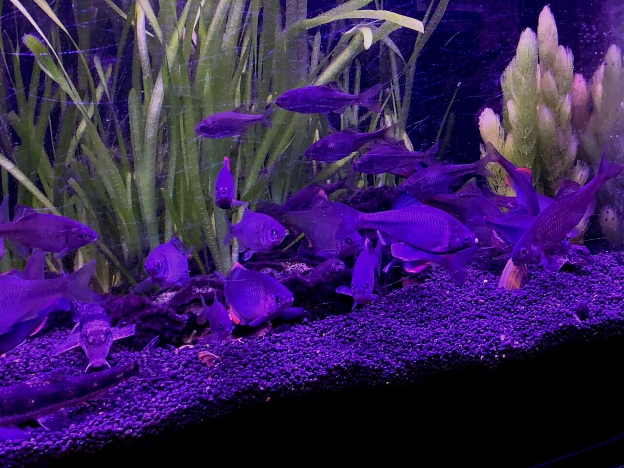 プレコの効果も有り、ガラスや流木・石の苔が減少してきた。