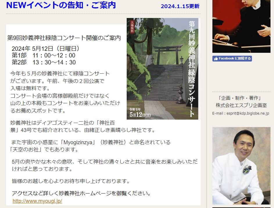 令和2年5月10日の第八回 妙義神社緑陰コンサート 中止のお知らせ