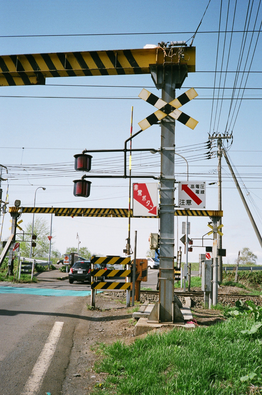 これは函館本線、北海道の大動脈鉄道の踏切。