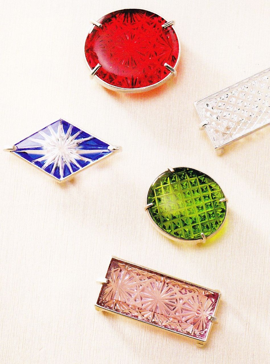 小川郁子さんの手による切り子の帯留め。
