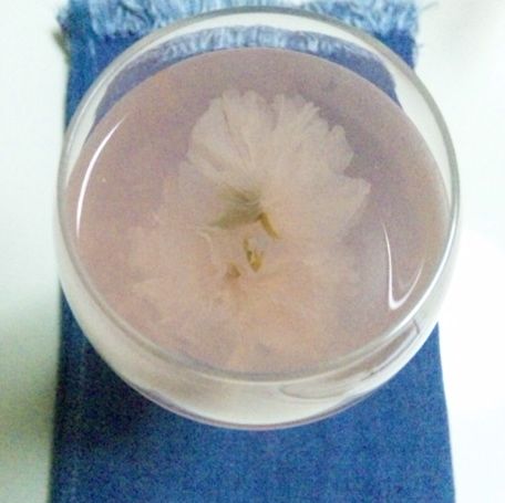 淡いピンクのお酒の中に八重の桜が2輪