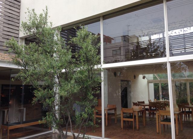 ガラス張りの明るい店内から見えるのは