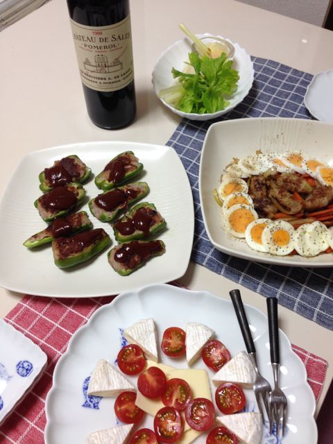 ピーマンの肉詰めとサラダ風野菜炒め、