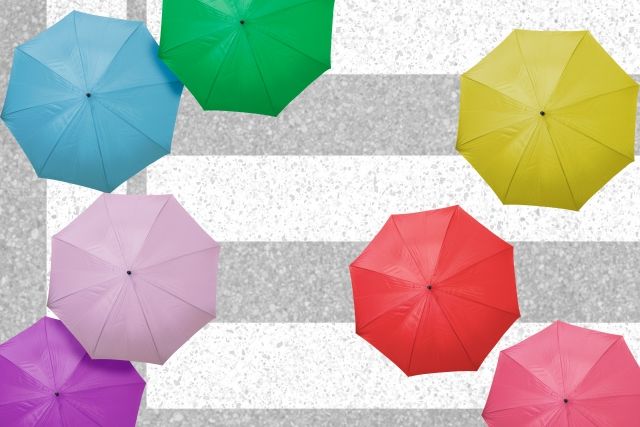 街中では傘の花がまだまだ花盛り。