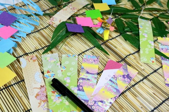 願い事を短冊に書いて笹の葉に結びますが、