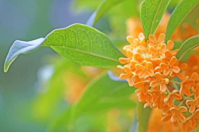 10月の地上ではキンモクセイが花盛り。