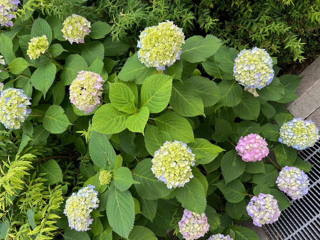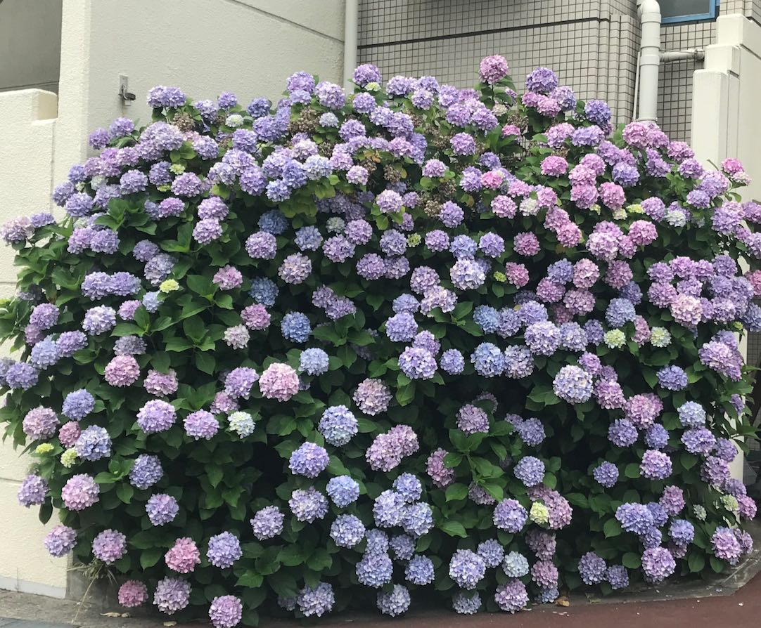 毎年楽しみにしているご近所の紫陽花の生け垣