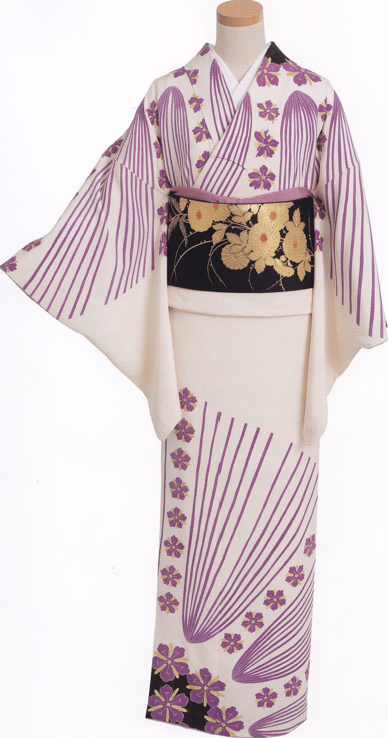 帯には流線型の文様を選んで。