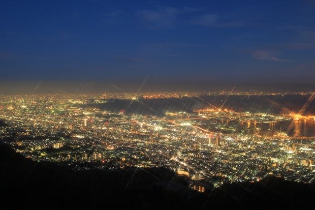 病院の屋上から久しぶりに神戸の夜景を眺めて
