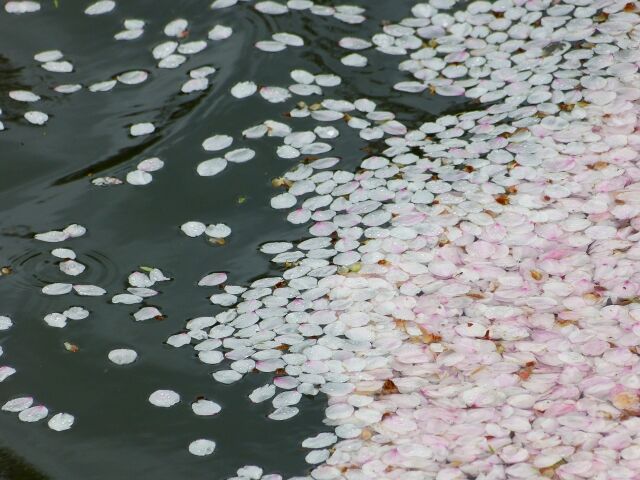 舞い散る花びら越しに控えめな満月を眺めるのも