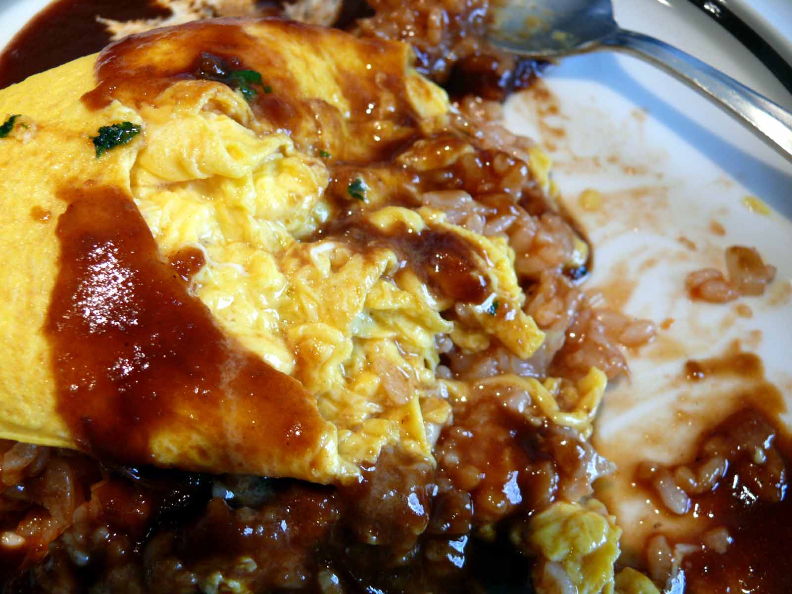 たまごと デミグラとチキンライスが 見事 溶け合って これぞオムライスって味です。