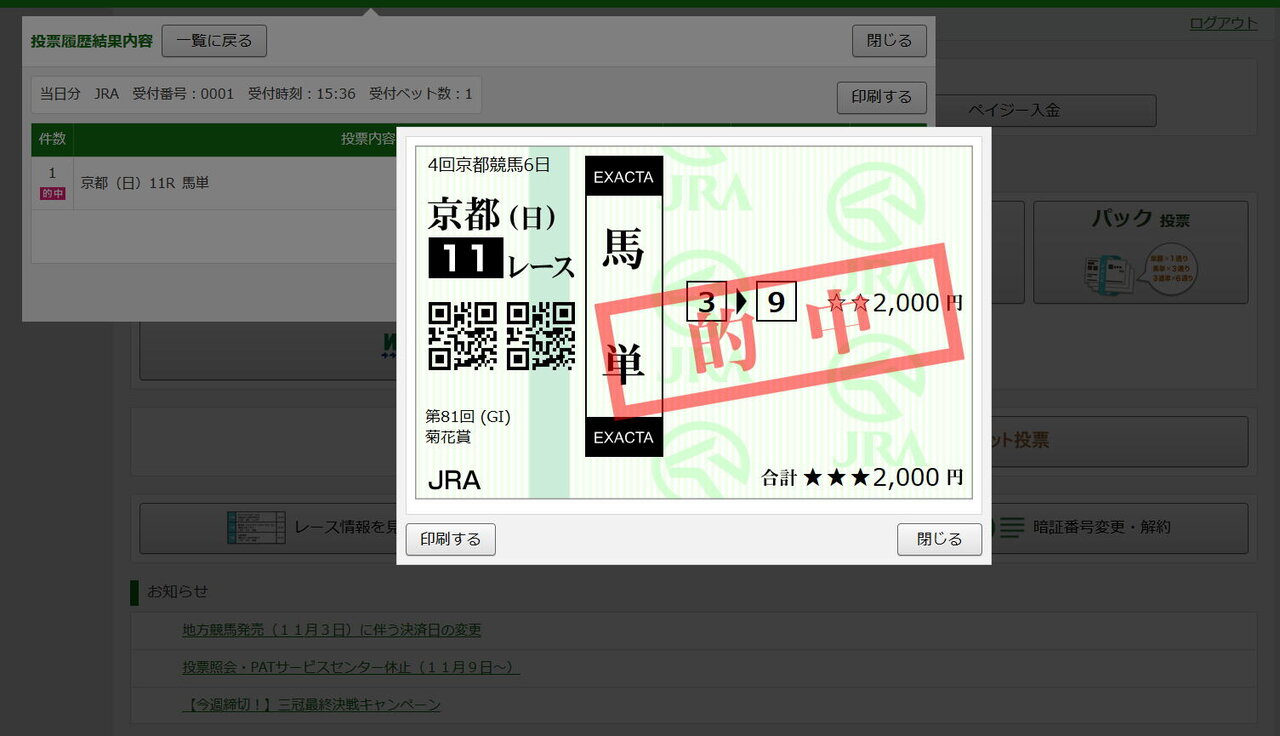 先週も5枠2頭に流して外していたので、今週リベンジかなとは思っていました。
