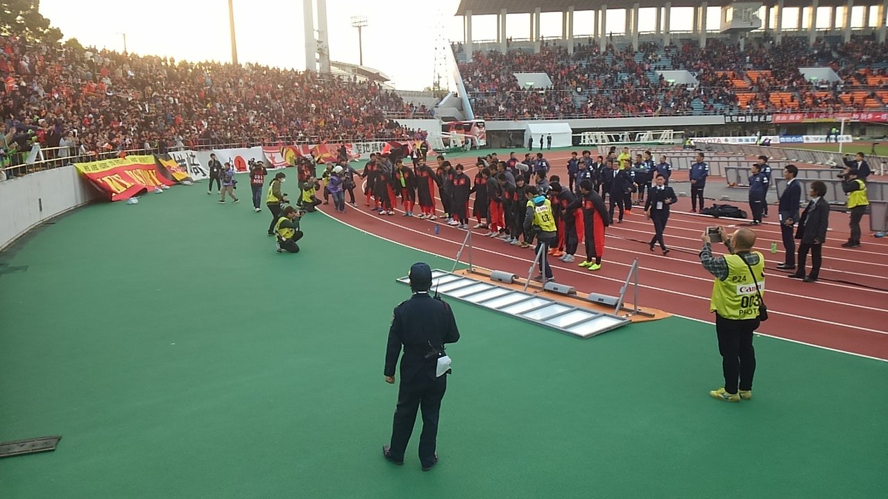 さらにセレモニー終了後、グランパ選手のグランド一周の際、アウェイ席の前でも一旦立ち止まって挨拶。やっぱり引き分けで誰もが幸せだった象徴であった。