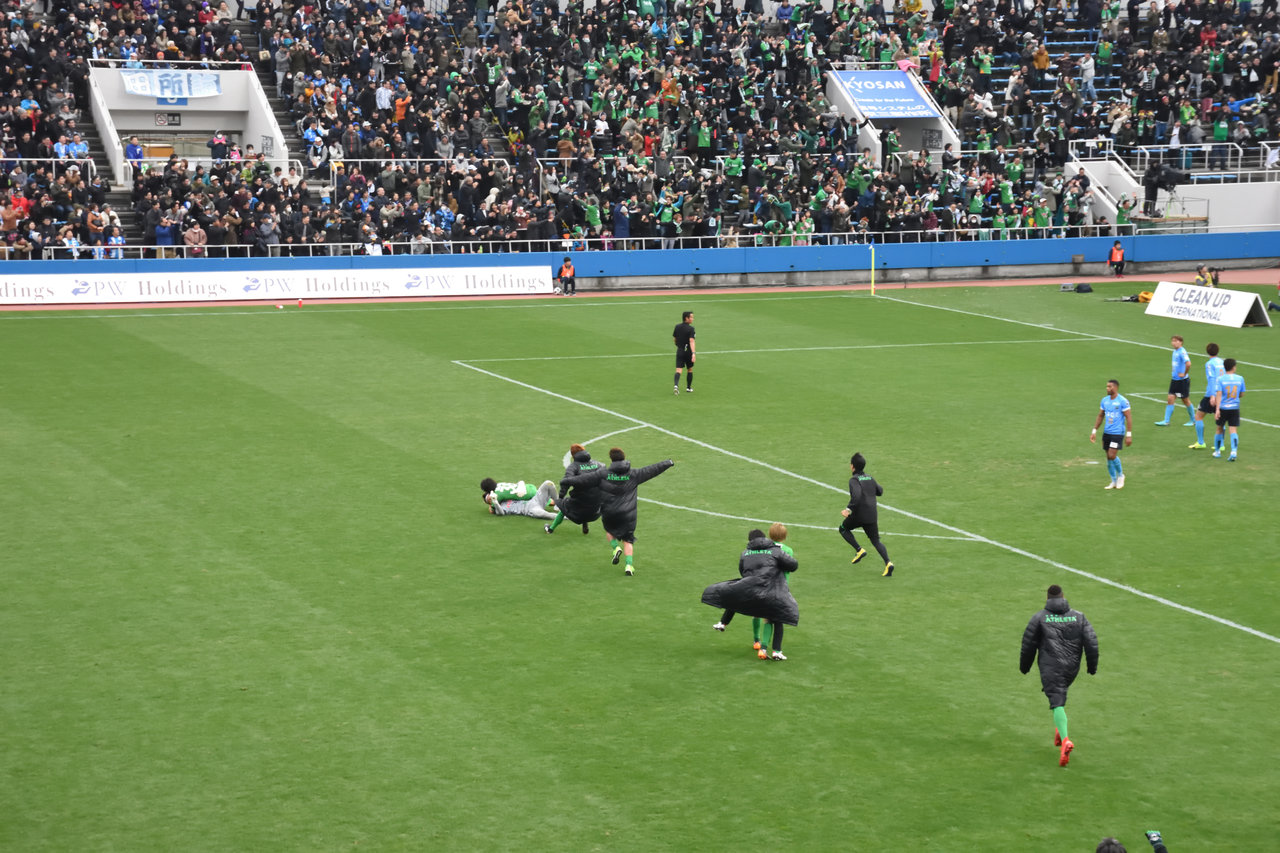 コーナーキックから何と上福元が頭で合わせてシュート。しかし横浜FCキーパーに阻まれるも弾いた球を奈良輪から代わったドウグラス押し込み決勝点に。どちらも監督冥利に尽きる采配だったね。