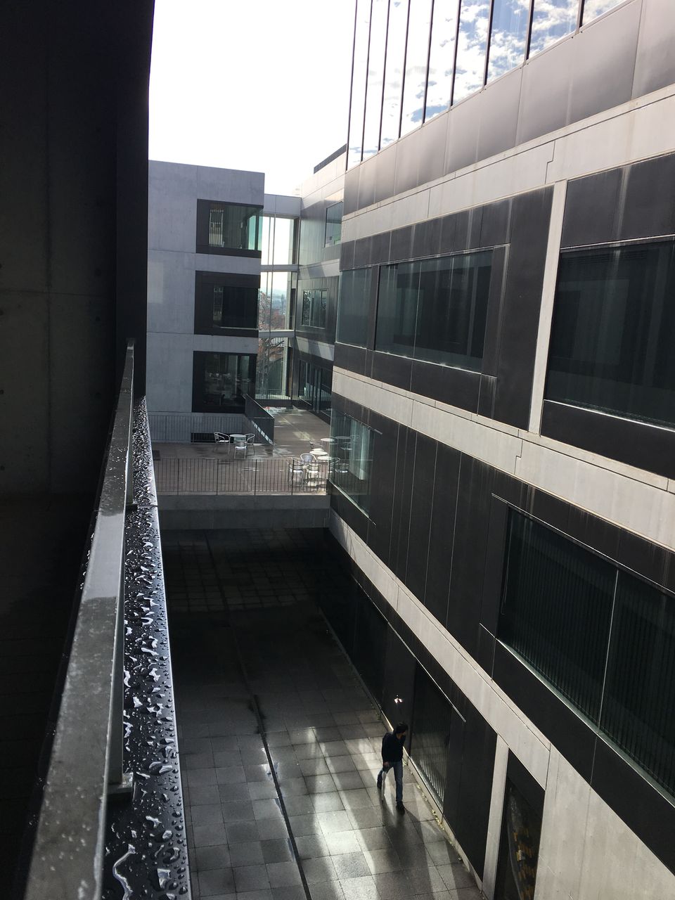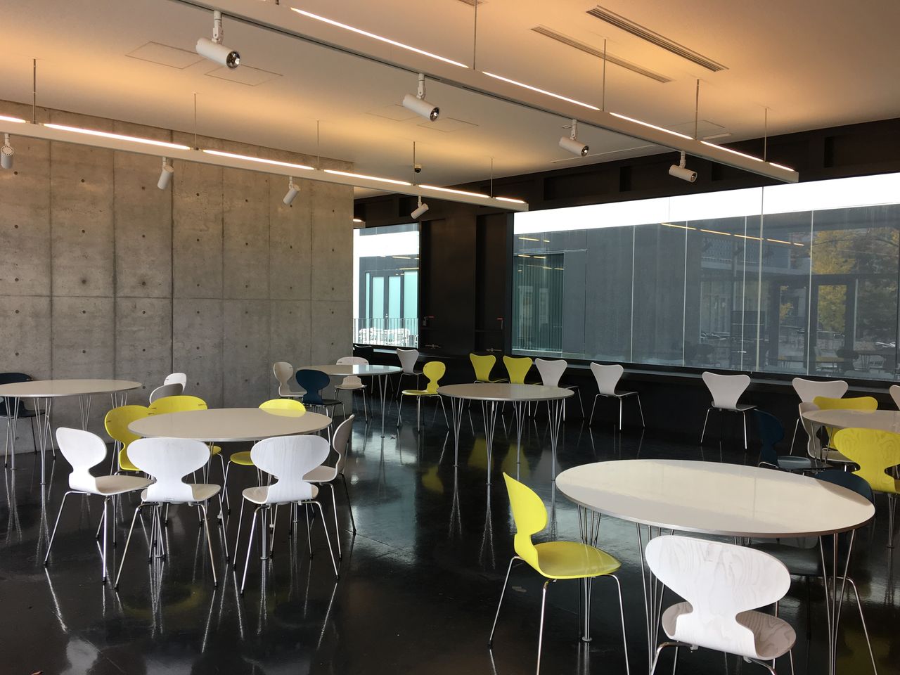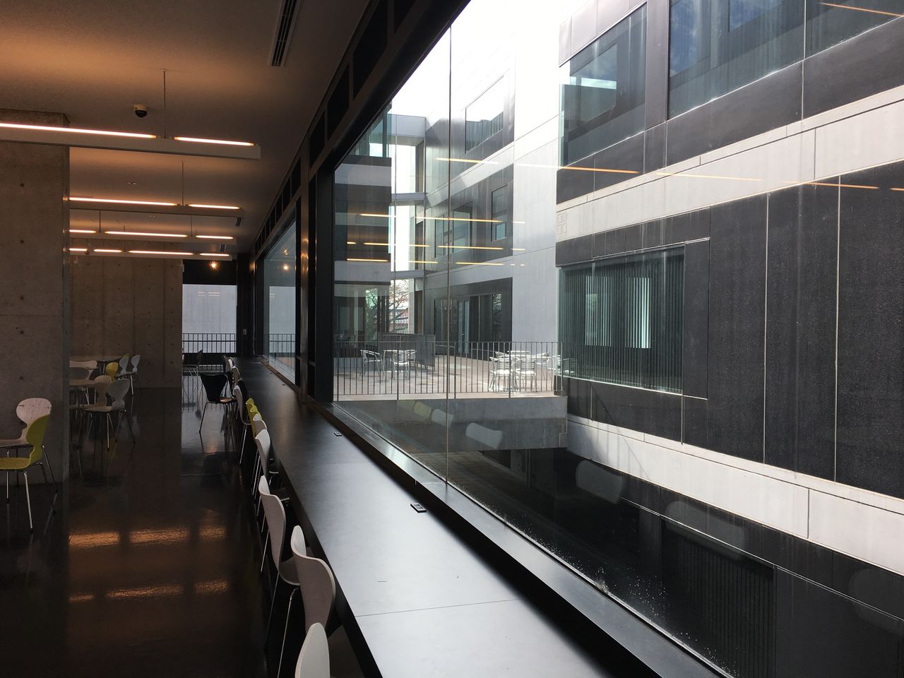 先日、千葉先生のところにご挨拶にお伺いする前に、ポスター写真で使わせていただいた、千葉学先生設計の「工学院大学125周年総合教育棟」を見学させていただきました。