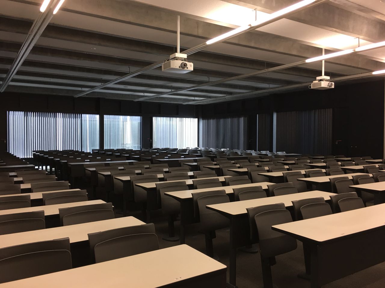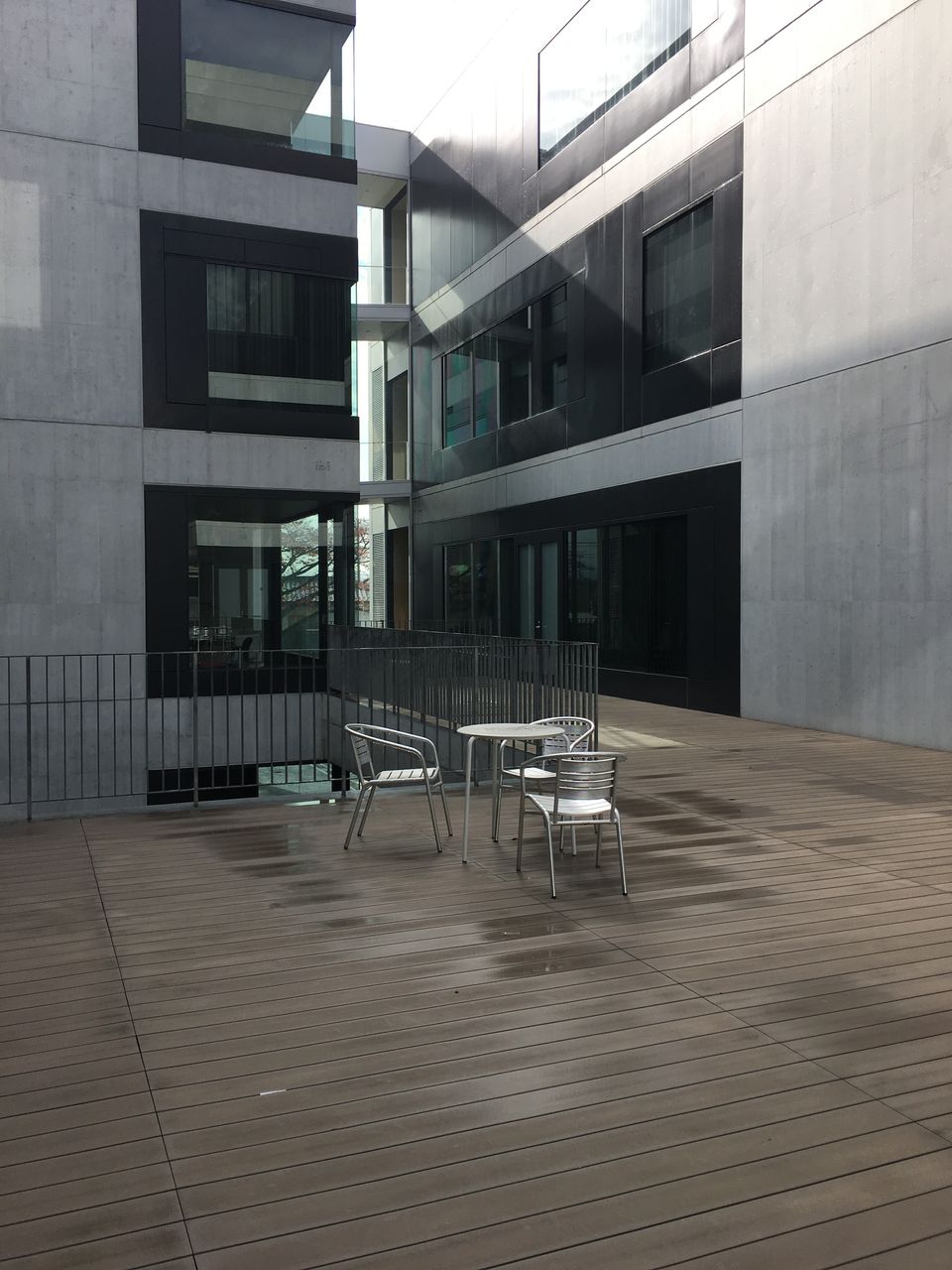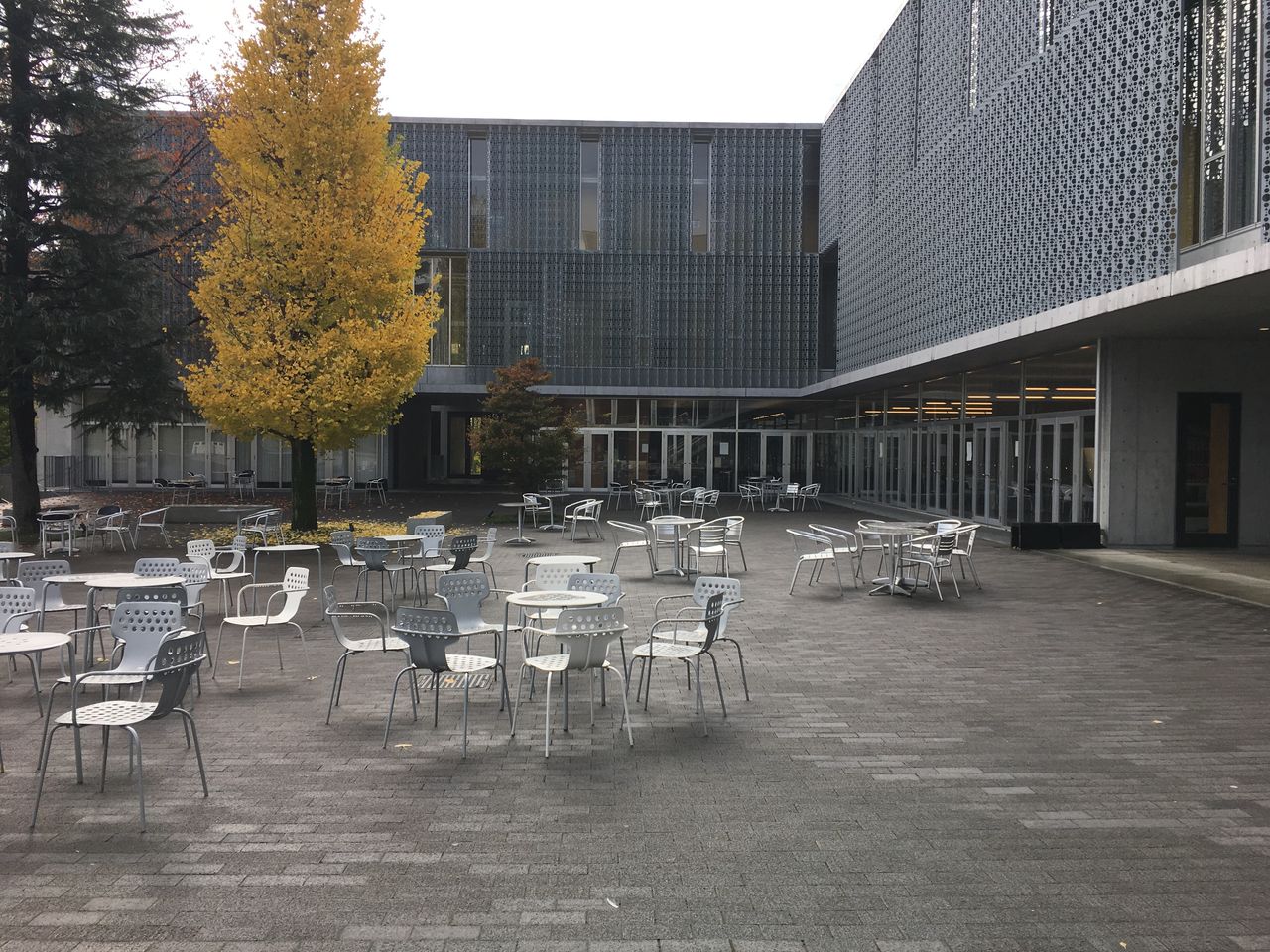 先日、千葉先生のところにご挨拶にお伺いする前に、ポスター写真で使わせていただいた、千葉学先生設計の「工学院大学125周年総合教育棟」を見学させていただきました。