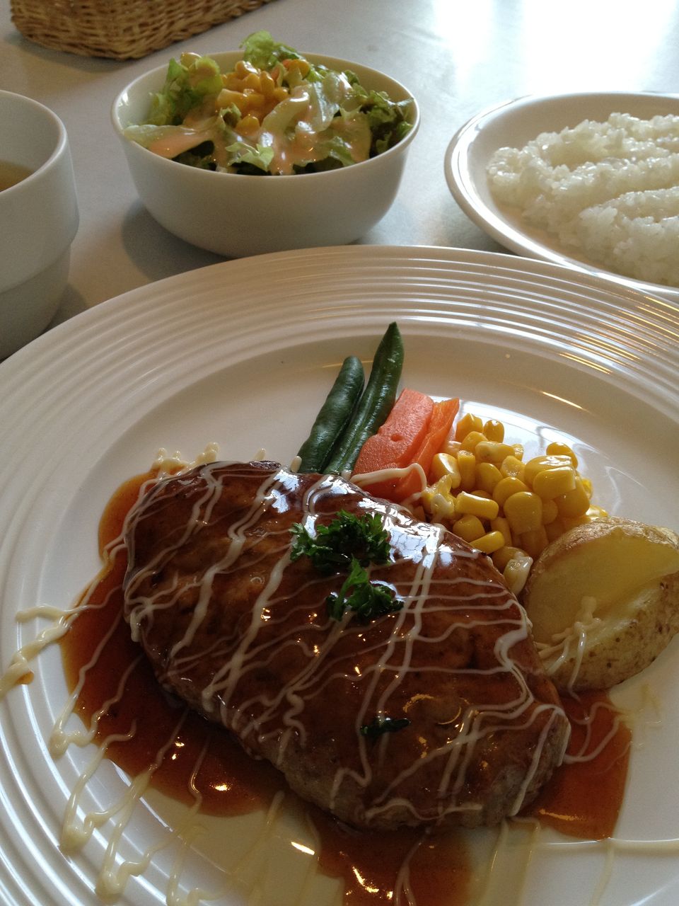 2017年最初の大館グルメは、池内の洋食屋さん・えんとつのハンバーグです。大きさやソースが選べるのですが、自分は150gでデミグラスソースにして、さらに和定食にしてみました。これで1,000円ちょっとだったかな。ジュージュー音を立てながら届けられる熱々のハンバーグは、ぶ厚くてお肉のうまみ満点。とろけるチーズとちょっと甘めのデミグラスとの相性がバッチリですね。味にもボリュームにも満足の一品です。